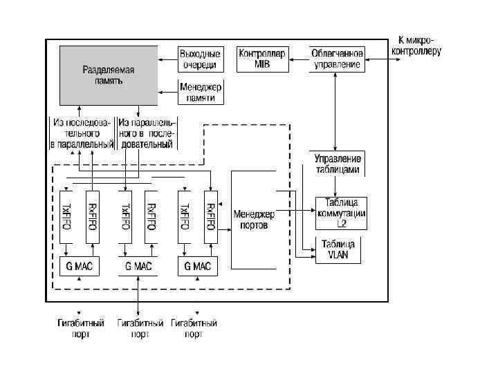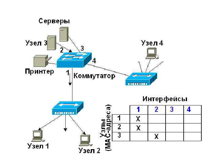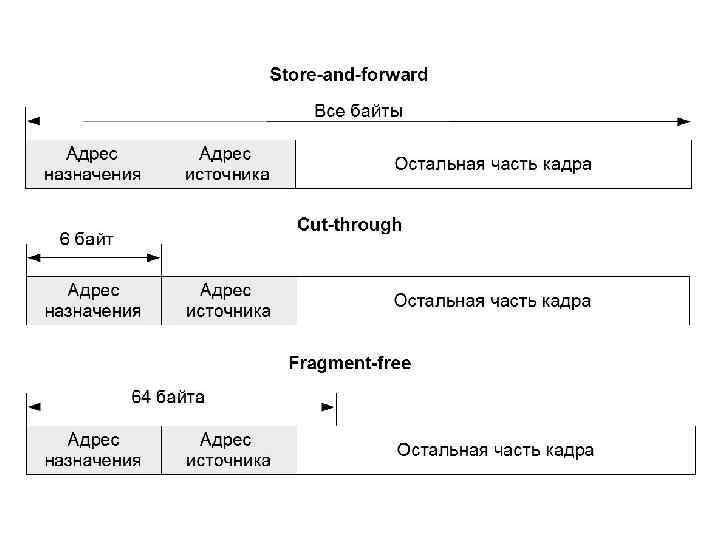 Характеристики, влияющие на производительность коммутаторов • скорость фильтрации кадров; • скорость продвижения кадров; • пропускная способность; • задержка передачи кадра; • тип коммутации; • размер буфера (буферов) кадров; • производительность коммутирующей матрицы; • производительность внутренней шины; • производительность процессора или процессоров; • размер внутренней адресной таблицы коммутации.