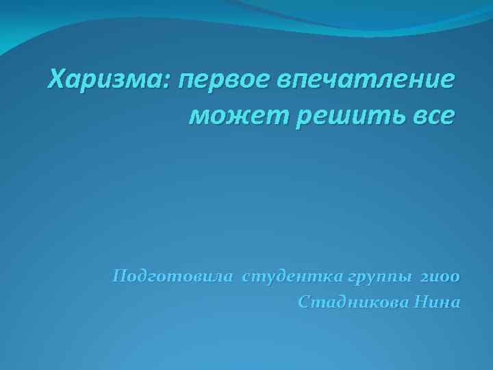 Харизма: первое впечатление может решить все Подготовила студентка группы 2 и 00 Стадникова Нина