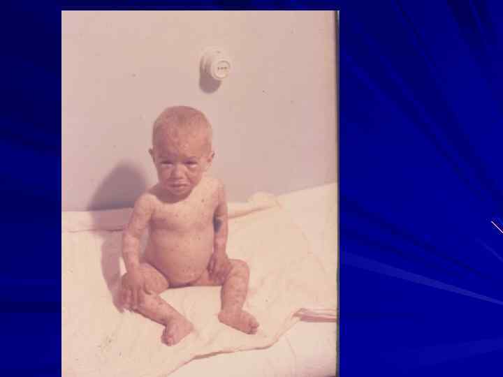 Выписка из истории болезни ребенка Я. , 4, 5 мес. Ребенок переведен из детской инфекционной больницы, где находился в течение 5 дней с диагнозом энтероколита, инфицированной экземы. Жалобы при поступлении в ОДКБ на повышение t до 38 о. С, сухость кожных покровов, пятнисто папулезную сыпь на лице, туловище, зудящую с участками мокнутия, кровоточащих трещин. Анамнез болезни. Болеет с периода новорожденности, когда на 10 день после выписки из роддома повысилась t до субфебрильных цифр, сохранялось мокнутие пупка. После перевода на исксственное вскармливание на 2 месяце жизни появились сухость кожных покровов, папулезная сыпь на туловище. В возрасте 4 х месяцев у ребенка стала повышаться t до 38, отмечались 3 фурнкула на волосистой части головы. После назначения антибиотиков высыпания на коже усилились, появилась диарея. Анамнез жизни. Ребенок от 2 доношенной беременности, протекавшей с гестозом, масса при рождении 2800. К груди приложен на 3 сутки, сосал неохотно. На грудном вскармливании до 1 месяца, в массе прибавлял плохо по 500, 0. Не привита. Мать – 32 г. , здорова; отец – 30 лет, в анамнезе холодовая аллергия. Сестре 6 лет, страдает аллергическим дерматитом. При поступлении в ОДКБ состояние ребенка тяжелое. Кожные покровы сухие с корочками на лице, участками мокнтий, кровоточащих трещин пятнисто папулезной сыпи. Отмечалась гиперплазия периферических лимфоузлов, гепатолиенальный синдром. В динамике состояние ребенка ухудшалось за счет развития септического процесса с двусторонней пневмонией, энтероколита, абсцесса ягодичной области, ДВС синдрома. На 10 день пребывания в клинике наступила смерть.
