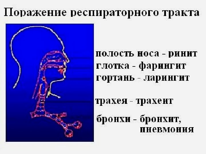 Показания для госпитализации I Показания, обусловленные вирусной инфекцией • • • Тяжелая интоксикация Поражение ЦНС (менингоэнцефалит) Дыхательная недостаточность (отек легких) Поражение сердца Поражение почек II Вторичные бактериальные осложнения • • • Пневмония Плеврит Бронхообструктивный синдром Острый отечно-инфильтративный ларингит Острый гнойный отит, синусит, фронтит III Обострение хронических соматических заболеваний