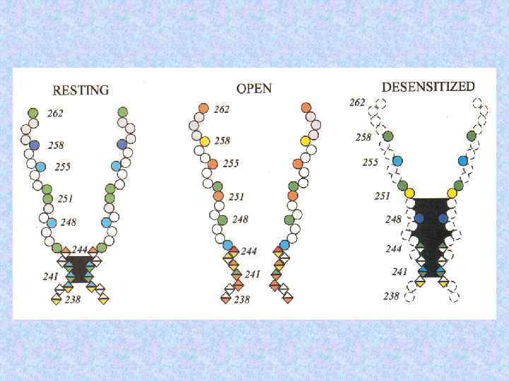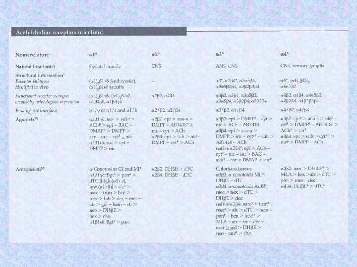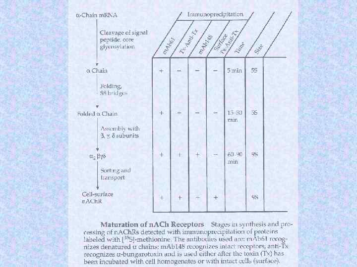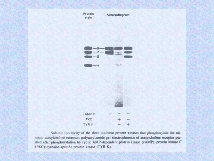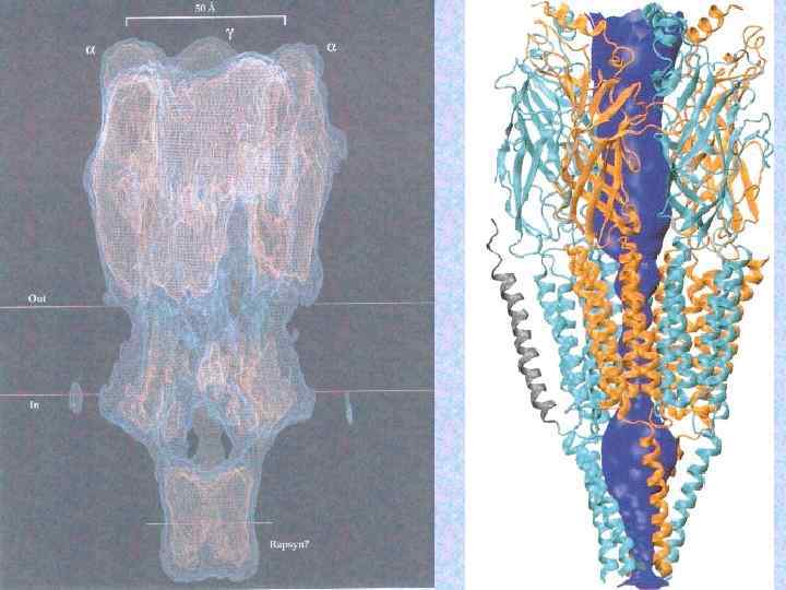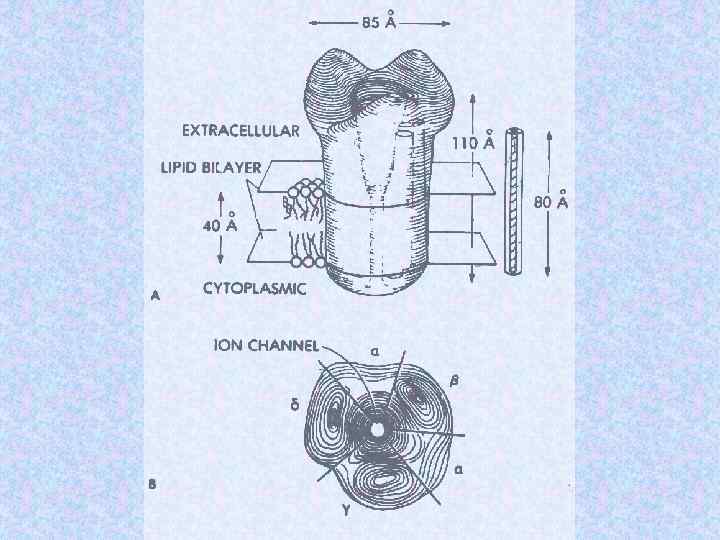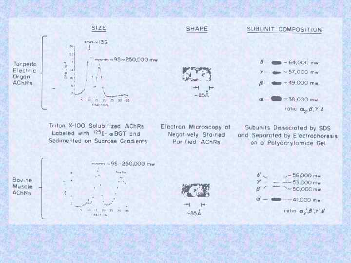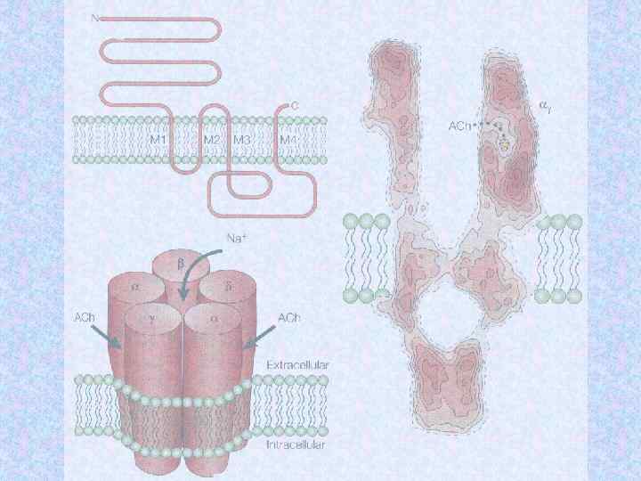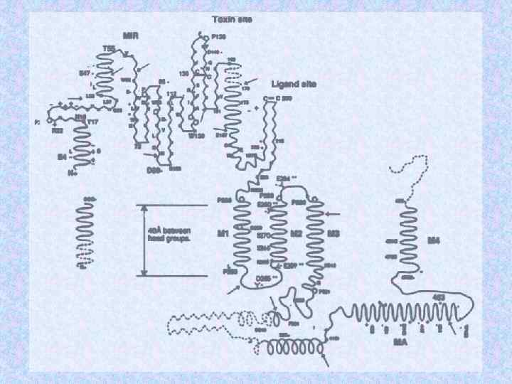 Молекулярные массы субъединиц холинорецептора Субъединицы Электофоретический анализ с SDS Данные структурного анализа генов a ~ 40 k. D 52, 4 k. D b ~ 50 k. D 56, 2 k. D g ~ 57 k. D 63, 2 k. D d ~ 64 k. D 65, 9 k. D