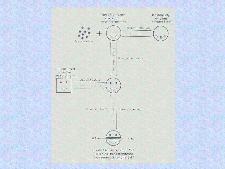 Хемовозбудимые ионотропные рецепторы Трансмембранные рецепторные системы, состоящие из нескольких субъединиц. При связывании с рецептором медиатор вызывает открытие ионного канала.