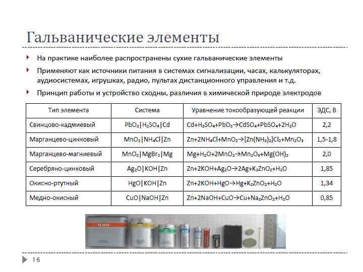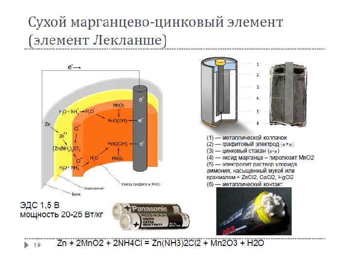Оксидортутный элемент Используется в слуховых аппаратах, а на основе системы оксид серебра-цинк – в наручных электронных часах. Преимущества по сравнению с элементом Лекланше: меньший вес при равной мощности, большой срок хранения, более постоянное сопротивление, меньшая поляризация Схема: (-) Zn | KOH (40% водный раствор) | Hg. O | C (+) Реакция: Zn + Hg. O + H 2 O = Zn(OH)2 + Hg 20