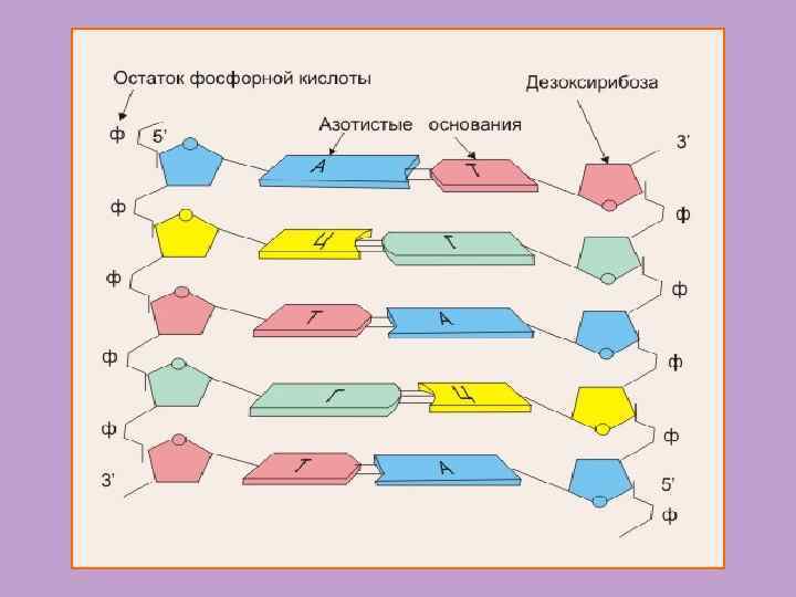 Азотистые основания ДНК: А-аденин Т- тимин, Г- гуанин Ц- цитозин Углевод ДНК: дезоксирибоза. В 1949 год Э. Чаргафф ; работы о закономерностях количественного содержания азотистых оснований в молекуле ДНК.