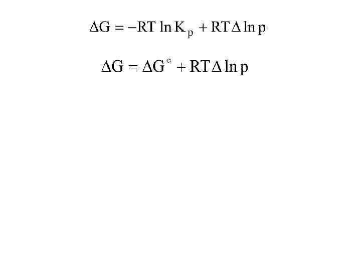 • Для реакции Fe. Oтв+H 2=Feтв+H 2 O стандартное изменение энергии Гиббса определяется по уравнению G (Т)=16272 9, 44. T Дж/моль. В каком направлении пойдет реакция при 1000 К и давлении 2 атм. , если смешать 3 моля H 2 O и 7 молей H 2? G= G +RT ln P G (T)=16272 9, 44. Т=16272 9, 44. 1000=6832 Дж/моль