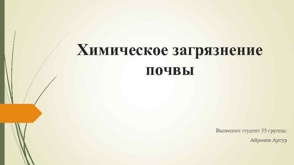 Химическое загрязнение почвы Выполнил студент 35 группы: Абрамов Артур