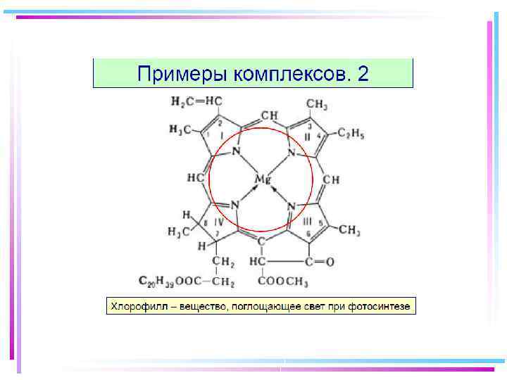 CH 2 Хелат-эффект H 2 C NH 2 CH 2 H 2 N NH 3 Ni H 3 N NH 3 [Ni(NH 3)6]2+ 6(обр)= 5, 3. 108 Ni H 2 N NH 3 этилендиамин (en) H 3 N H 2 C NH 2 : NH 2 CH 2 [Ni(en)3]2+ : NH 2 3(обр)= 1, 3. 1019 [Ni(NH 3)6]2+ + 3 en + 6 H 2 O = [Ni(en)3]2+ + 6 NH 3·H 2 O