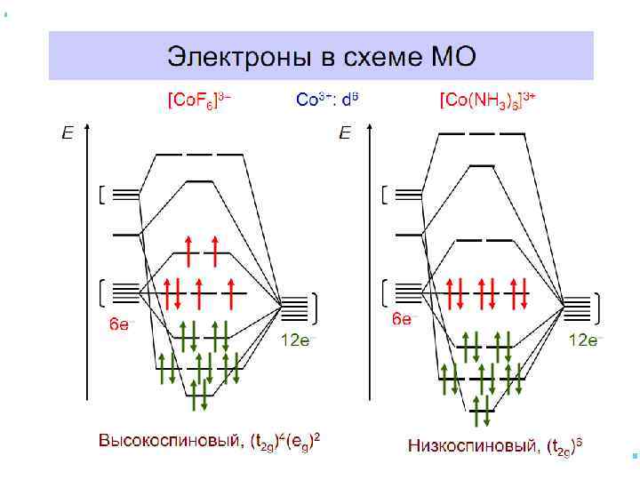 Сильное поле Слабое поле 4 d d 4, 5, 6 d 1 2 d 1 4 5 6 диамагнитный d 7, 8, 9, 10 2 3 6 высоко-парамагнитный d d 7 9 8 10 d 1, 4 2, 5 3, 6 d 4, 5, 6 d 3 5 7, 8, 9, 10 d 4 9 5 10 d 1, 6 27 3 8