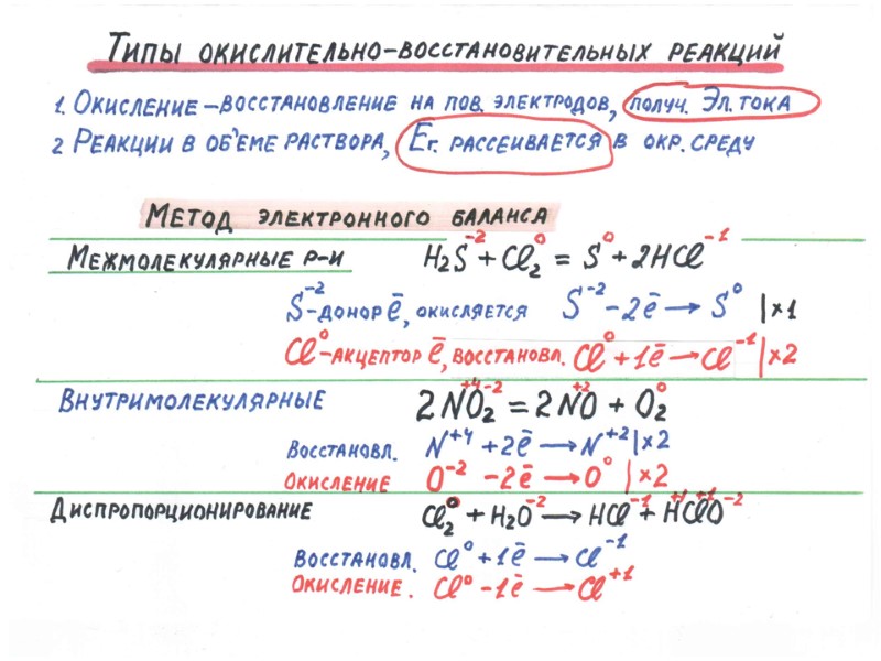 4. Окислительно-восстановительные реакции с участием металлов (метод электронного баланса) Zn(т) + CuSO4(р-р) ZnSO4(р-р) + Cu(т) Реакция окисления (атом цинка отдает электроны) Zn (т) - 2e Zn (р-р) Реакция восстановления (ион меди принимает электроны) Cu + 2e Cu о +2 +2 _ о _ 5. Окислительно-восстановительные реакции с неметаллами Cl2 (газ) + НОН HCI + HOCI CI - 1e CI окисление хлора о + CI + 1e CI восстановление хлора о о -1 +1 _ _ _