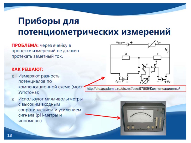 МЕТОД ИЗМЕРЕНИЯ ПОТЕНЦИАЛОВ МЕТАЛЛИЧЕСКИХ ЭЛЕКТРОДОВ К Cl + - Н2 Н2 Pt Zn Zn Zn + 2e 2H + 2e H2 +2 + - - e - e - Стандартный водородный электрод Цинковый электрод о о / /