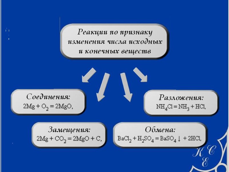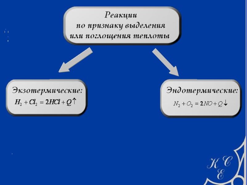 Гетерогенная химическая реакция протекает на граничной поверхности раздела фаз: Гомогенная химическая реакция протекает в однофазной системе (в газе или в растворе): О2, СО2 С С(т) + О2(г) СО2(г) СН4(г) + 2О2(г) СО2(г) + 2Н2О(г) NaOH(р-р) + HCl(р-р) NaCl(р-р) + Н2О(р-р) Na + OH + H + Cl Na + Cl + Н2О 4Fe(т) + 3О2(г) 2Fe2О3(т) + + +