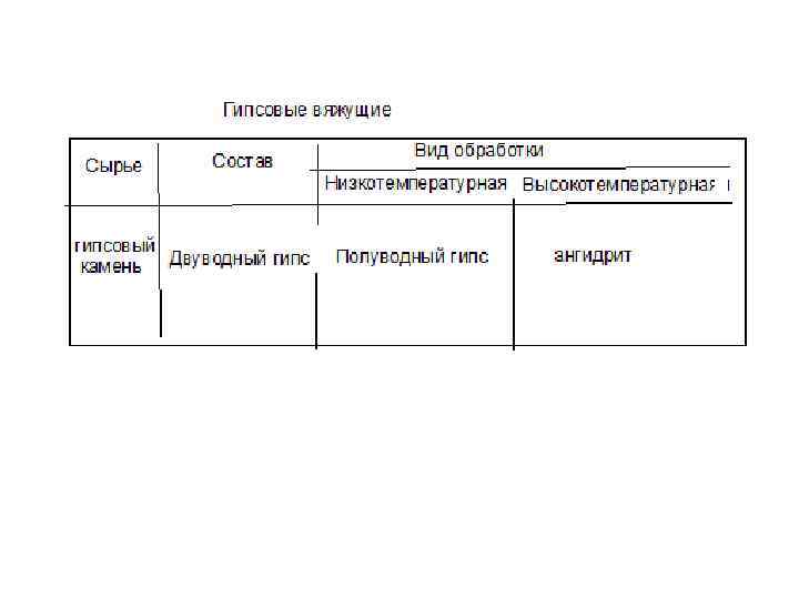 Высокотемператуоная обработка (до С 900 - медленно – схватывающие и медленнотвердеющиеся воздушные вещества Сырье: Двуводный гипс Ca. SO 4 · 2 Н 2 О Состав после обжига: Ангидрит Ca. SO 4,