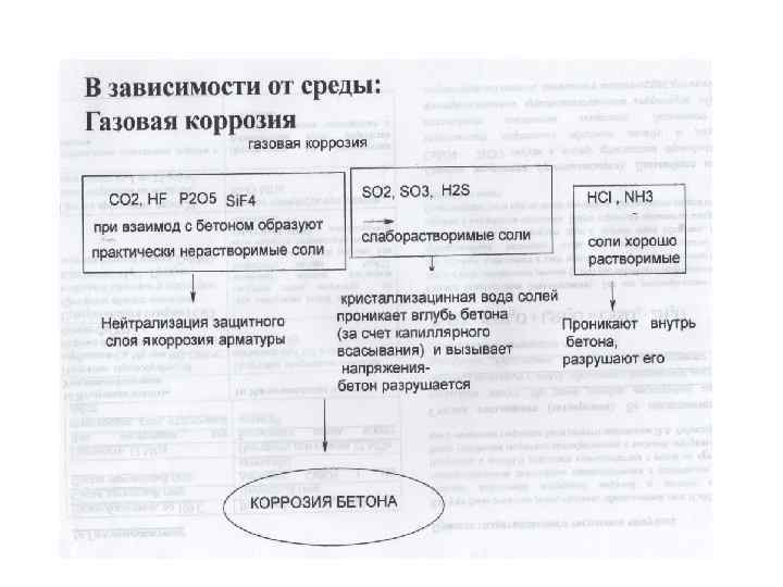 Жидкостная коррозия. 1 Коррозия выщелачивания – растворение компонентов цементного камня и из структуры бетона выносятся : Ca(OH)2 + СO 2 = Ca. СO 3 + H 2 O, Са. СО 3 образуется в поверхностном слое, при карбонизации (значительная толщина защитного слоя и щелочная среда самого бетона обеспечивают ему наличие защитных свойств сразу после изготовления) постепенно снижаются его защитных свойств по отношению к стальной арматуре. 2. При контакте бетона с водными растворами кислот образуется легкорастворимый бикарбонат кальция, который агрессивен для бетона, а при наличии воды растворяется в ней и постепенно вымывается из структуры бетонного камня. Образование бикарбоната кальция: Ca. CO 3 + CO 2 + H 2 O = Ca(HCO 3)2. 3. Помимо растворения наблюдается и протекание химической коррозии бетона: Ca(OH)2 + 2 HCl = Ca. Cl 2 + 2 H 2 O, при этом вымываются соли хлористого кальция.