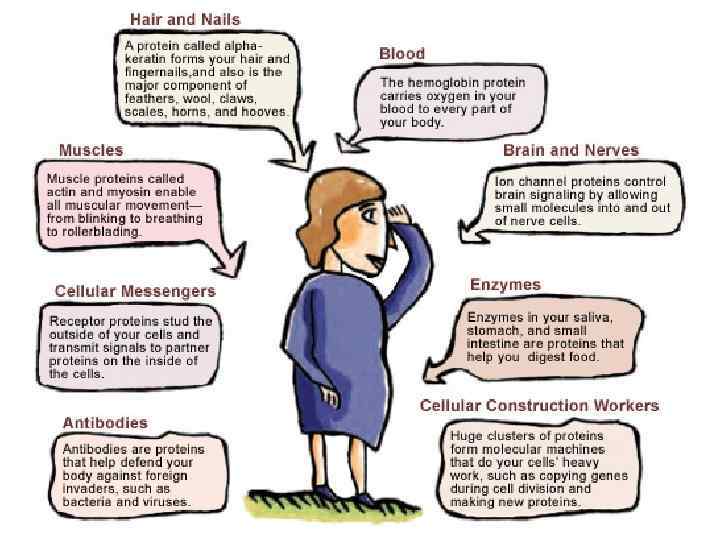 Содержание белков в клетке 10 -20 % от сырой массы клетки 50 -80 % от сухой массы клетки В организме человека массой 70 кг содержится 10 кг белка Почему так много?