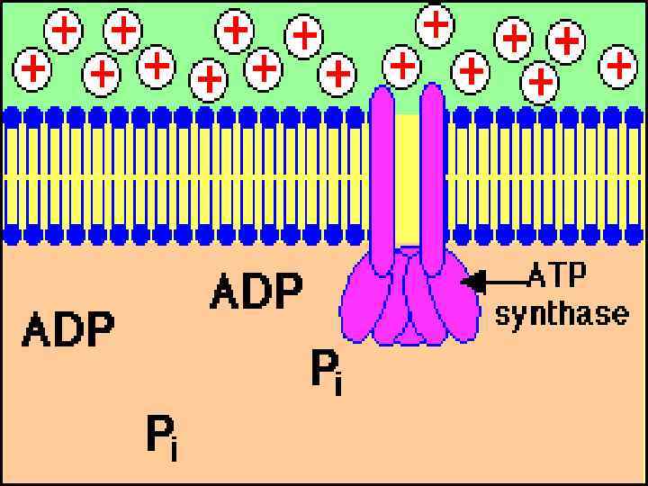 Сущность теории Митчелла • • • Фосфорилирование происходит на мембранах, которые непроницаемы для Н+ и имеют ЭТЦ. Энергия, высвобождаемая при работе ЭТЦ, запасается в форме протонного градиента. Обратный поток Н+ через протонный канал АТФсинтазного комплекса сопровождается образованием энергии фосфатной связи АТР. Митчелл ввел понятие сопрягающей мембраны, т. е. мембраны, на которой процесс транспорта ē сопряжен с процессом синтеза АТР.