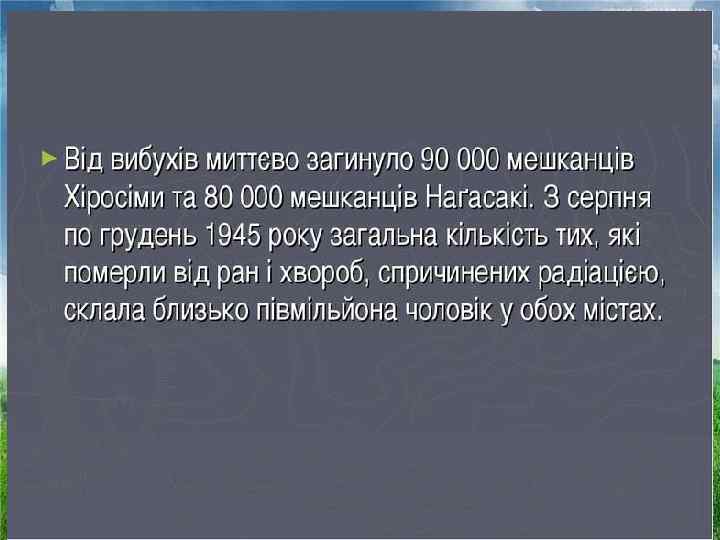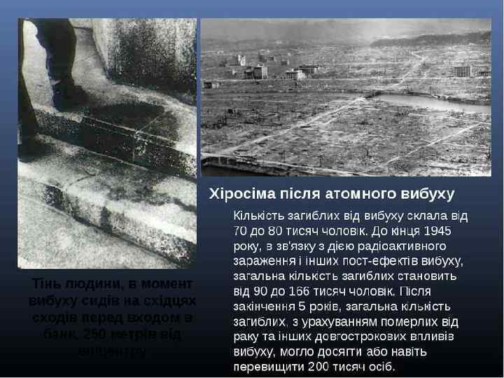 У сучасних Хіросімі і Нагасакі кипить життя, але майже кожне місце в цих містах нагадує про трагедію. Презентацію підготував учень 11 клас Староушицької спеціалізованої школи I-IIIступенів Екологічного напрямку Петрюк Дмитро