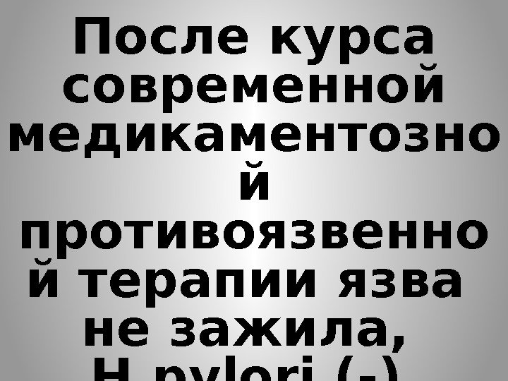 После курса современной медикаментозно й противоязвенно й терапии язва не зажила, H. pylori (-)