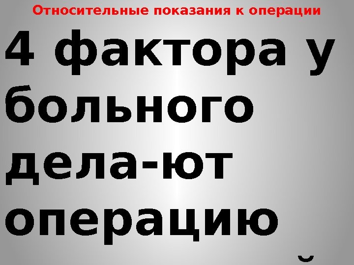 Относительные показания к операции 4 фактора у больного дела-ют операцию показанной