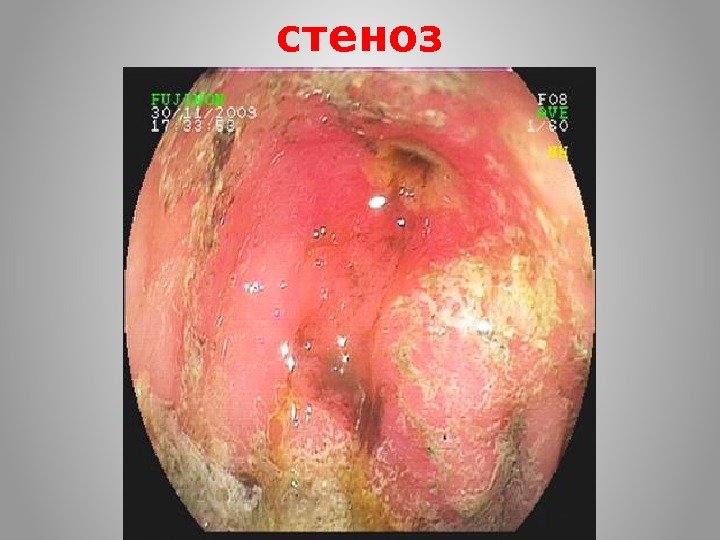 Пенетрация в толстую или тонкую кишку приводит к развитию внутрен-них свищей. Желудочно-ободочные свищи достаточно большого диаметра приводят к поносам, истощению, раз-витию алиментарной дистрофии. Осо-бенно опасна отечная ее форма, когда развиваются отеки, увеличивается печень. Больных могут лечить от цирроза печени.