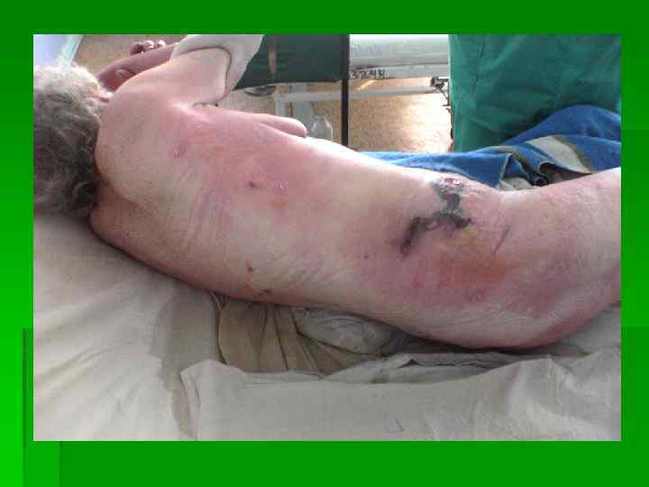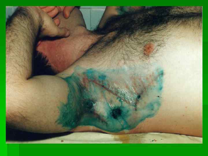 Классификация продолжение § § § 2. По проявлениям хирургическая инфекция может быть: - местной - общей с преобладанием септических проявлений. 3. По локализации: (кожа и подкожная клетчатка, плевра и брюшина, органы брюшной и плевральных полостей, костей и суставов, головного мозга и его оболочек и т. д. ) 4. По этиологии: А) В зависимости от особенностей жизнедеятельности микроорганизма аэробную и анаэробную. В) В зависимости от вида микроорганизма : -стафилококковая -стрептококковая -синегнойная -колибацилярная и др.