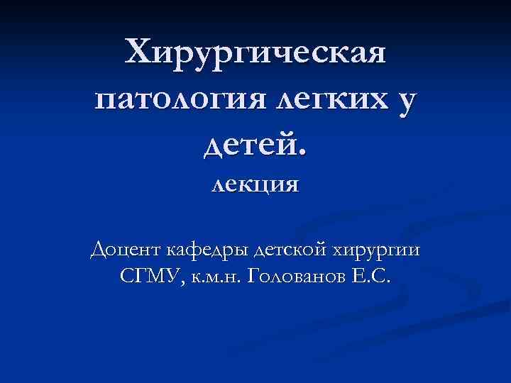 Хирургическая патология легких у детей. лекция Доцент кафедры детской хирургии СГМУ, к. м. н. Голованов Е. С.