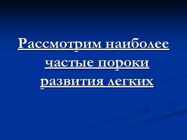 Рассмотрим наиболее частые пороки развития легких