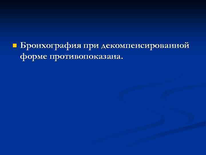 n Бронхография при декомпенсированной форме противопоказана.