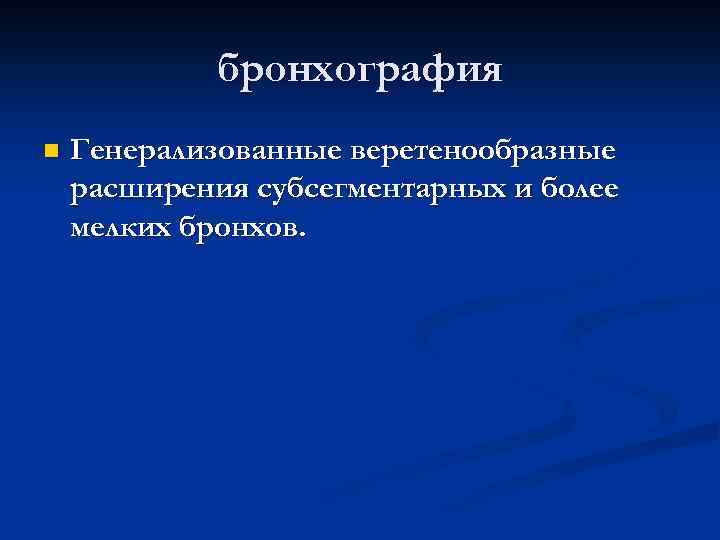 бронхография n Генерализованные веретенообразные расширения субсегментарных и более мелких бронхов.