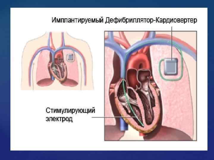Имплантация автоматического дефибриллятора-кардиовертера Описание Имплантируемый дефибриллятор-кардиовертер (ИДК) представляет собой небольшое устройство, работающее от батареи, контролирующее ритм сердца и обеспечивающее соответствующее лечение. Большинство ИДК совмещают функции кардиостимулятора и дефибриллятора. Если сердцебиение слишком медленное, ИДК может помочь сердцебиению войти в нормальный темп. Если сердце начинает биться неупорядочено способом, устройство соответствующим образом воздействует на сердце, чтобы восстановить нормальный ритм.