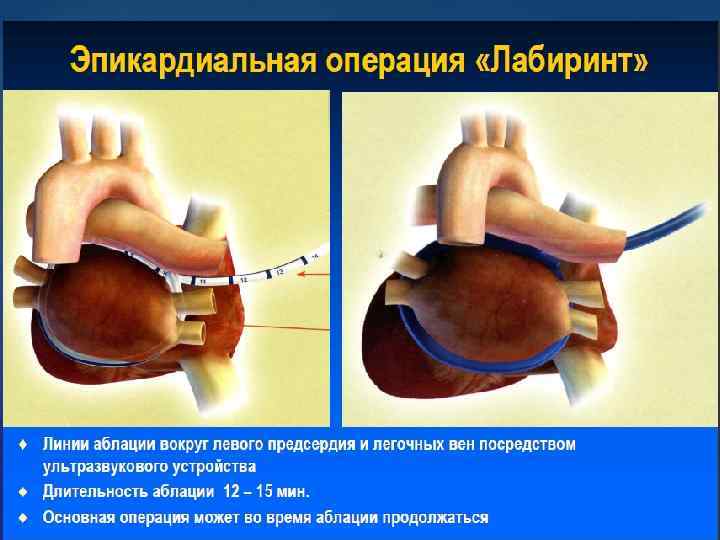 Возможные осложнения при операции "лабиринт" Инфекция; Кровотечение; Проблемы, связанные с анестезией; Необходимость постоянного кардиостимулятора; Почечная или другая органная недостаточность; Инсульт; Смерть. Некоторые факторы, которые могут увеличить риск осложнений включают в себя: Существующие заболевания сердца, легких, почек; Ожирение; Диабет; Предыдущая операция груди; Использование некоторых лекарств.