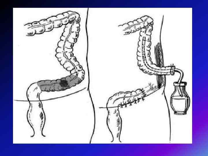 Реконструктивно-пластические операции • Низведение ободочной кишки в рану промежности и формирование промежностной колостомы с наложением искусственного гладкомышечного жома • Создание толстокишечного тазового S- или Wобразного резервуара в области промежностной колостомы. • Данные модификации можно выполнить лишь в том случае, если рак не прорастает в окружающую клетчатку, не дает регионарных и отдаленных метастазов (Т 1 -2 N 0).