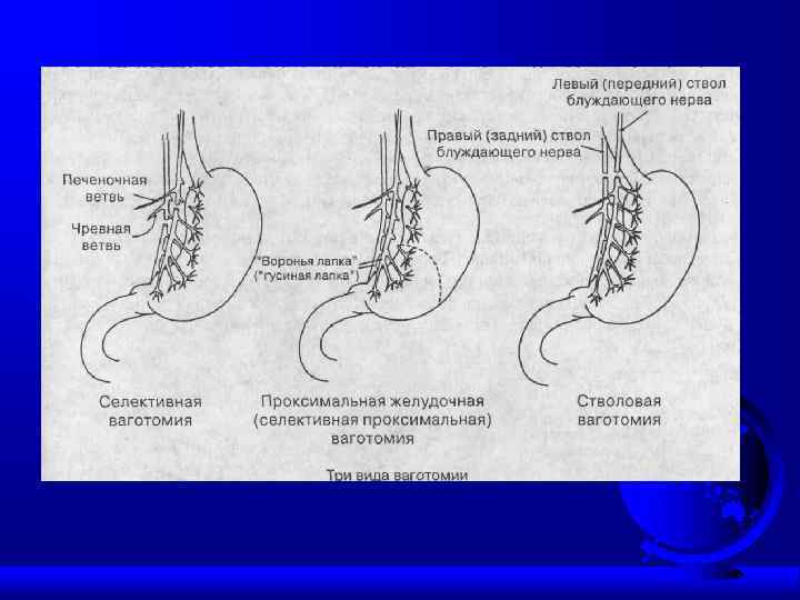Основные принципы хирургического лечения F Удаление язвы как источника осложнений; F Снижение кислотообразующей функции желудка; F Устранение нарушения эвакуаторной функции желудка.