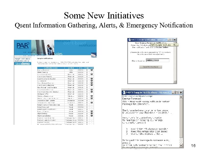 Some New Initiatives Qsent Information Gathering, Alerts, & Emergency Notification 16