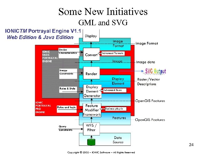 Some New Initiatives GML and SVG IONICTM Portrayal Engine V 1. 1 Web Edition & Java Edition 24 Copyright © 2002 – IONIC Software – All Rights Reserved