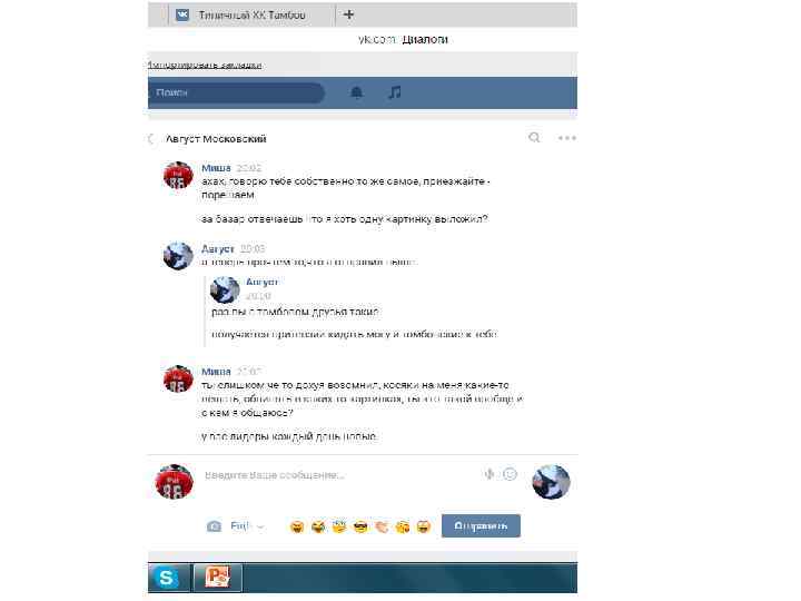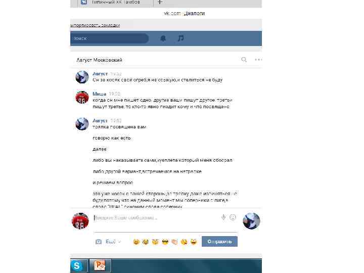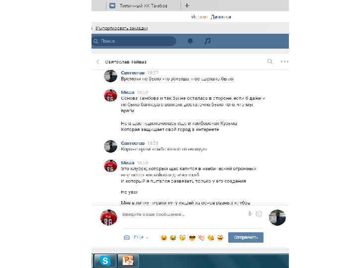И снова веселье. Зовет меня на забив хуй знает куда (почти 4000 км, 4 дня на поезде в одну сторону), я говорю чтоб приезжал сам, он утверждает, что я сливаюсь и отказываюсь, я еще раз пытаюсь объяснить, что пусть храбрец приезжает сам из своего «географического центра» . Потом хуясь, пизданул то, что я выкладываю картинки в паблике Тамбова. Пиздец логика… Когда я его попросил пояснить за то, что он пиздаболит, он съехал типо «ну вы ж с тамбовом друзья, значит за их картинки ты тоже виноват» . Очередная необоснованная пиздаболия с их стороны. А теперь вспомните, как они не могли ответить за картинки в СВОЕМ ЖЕ ПАБЛИКЕ, и обтекали не могли ниче про это сказать кроме как «это не мы выкладывали» , а на меня вешают то, что я виноват, что Тамбов выкладывает про них картинки, и пиздаболит что это вообще делаю я.