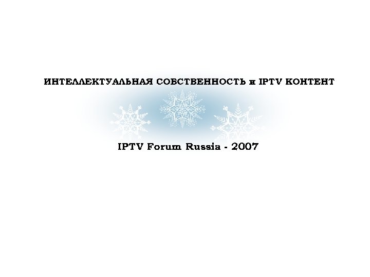 Хотелось бы поблагодарить устроителей IPTV Forum Russia 2007 и лично программного директора Светлану Жилину за безупречную работу по организации и проведении Форума, а также Российскую Академию Правосудия Верховного Суда РФ и Высшего Арбитражного Суда РФ и лично Илью Кондрина за оказание помощи в подготовке данного выступления