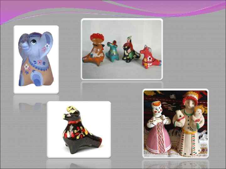 Глиняная игрушка Городецкий район известен своей самобытной глиняной игрушкой – «жбанниковской свистулькой» . Точное время происхождения промысла неизвестно. На территории средневекового Городца археологами были найдены в глиняные свистульки в слоях XIII века. В начале XX столетия похожие по форме свистульки лепили в деревнях Жбанниково, Проскурино. Одна из самых известных мастериц жбанниковской игрушки – П. С. Тимофеева. У неё дома создан музей «жбанниковской свистульки» : птицысирины, кони, олени, бараны, петухи, всадники… Дети Прасковьи Степановны пошли по её стопам…