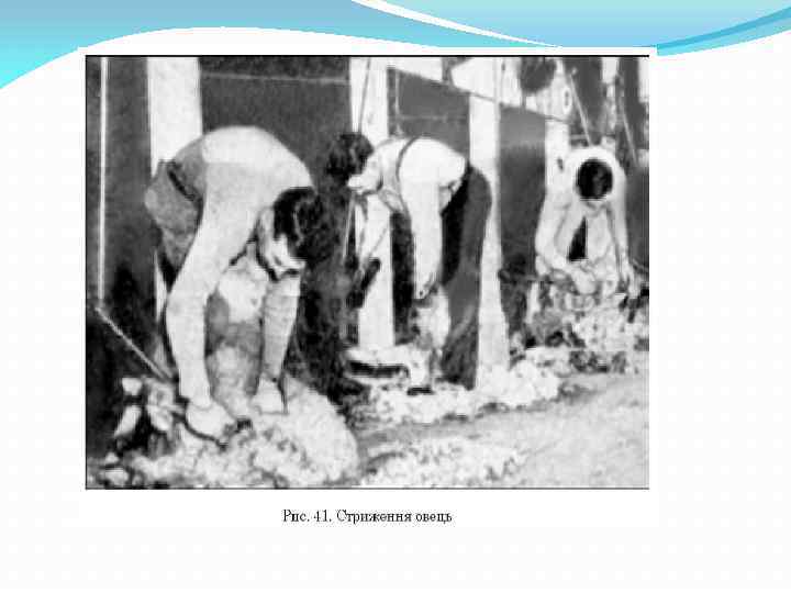 Стрижка овец. Шерсть получают путем стрижки овец. Всех овец стригут весной. Овец грубошерстных, с полугрубой неоднородной шерстью, а также молодняк стригут еще и осенью. Стригут овец утром, до кормления. Стрижку начинают с брюха, потом стрижут лопатки и бедра, потом одна сторона, вторая сторона вдоль туловища по направлению от спины к брюху. Это достаточно сложная и трудоемкая работа.