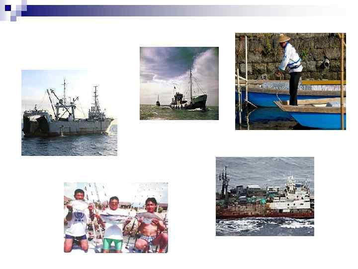 n Прибрежным рыболовством занимаются жители приморских селений; дальним - крупные монополии, обладающие технически совершенным рыболовным флотом. Северо-западная часть Тихого океана - главный район мирового рыболовства, добычу рыбы и морепродуктов здесь ведут Япония, Китай, Россия, республика Корея, некоторые другие страны.