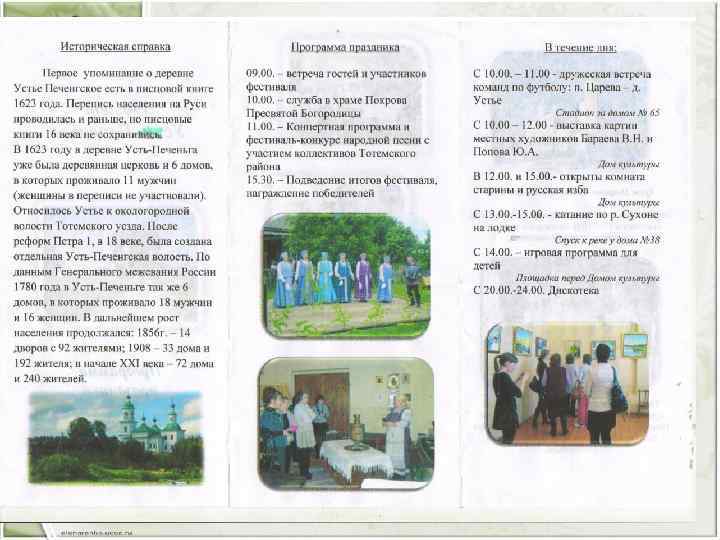 Текст для слайдов • 16. Покровские прихожане отрядили старосту — Сочневу Матрену Васильевну, которая обходила ближние и дальние деревни и искала: не остановился ли где такой освободившийся батюшка. И вот в одной деревенской избе селения Тафты на вопрос, нет ли здесь батюшки, с печи выглянул старичок в посконной рубахе и, свесив ноги в лаптях, сказал: «Я священник, иду из тюрьмы» . Звали этого батюшку отец Николай Образцов, десять лет он сидел «за религию» . На обратном пути в Усть-Печеньгу удалось найти и псаломщика — старичка Ивана Алексеевича Кузнецова. 17 -20 без текста 21. В послевоенные времена, когда по всей епархии было лишь 17 действующих церквей, в Покровском храме прихожан на службах было неизменно много, сейчас же положение изменилось. Появились действующие храмы в Тотьме, поумирали старые бывалые местные прихожане, население Усть-Печеньги убываетда и батюшки своего нет. Время от времени приезжают благочинный отец Георгий из Тотьмы и кто-нибудь из вологодских священников — кого удастся уговорить. Поэтому в 2014 году храм был ограблен, но стараниями костромской полиции (далее по тексту на слайде!)