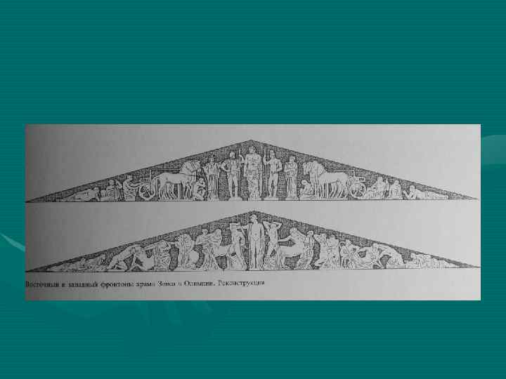 Зевс между Пелопом и Эномаем. Центральная и правая часть восточного фронтона храма Зевса в Олимпии.