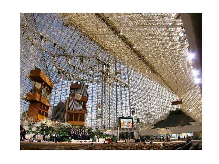 Церковь почти целиком сделана из фрагментов стекла, которых насчитывается более 12 тысяч. Внешний вид впечатляет - собор сделан в виде четырехугольной кристаллической звезды, но еще красивее внутри, когда сквозь стекла проникает солнечный свет и видно небо. А еще внутри установлен самый большой в мире орган, в котором более 16 тысяч труб.