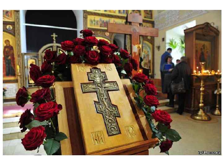 На Крестопоклонной неделе украшается цветами Крест Господень. А после нее в храме, среди других, ставят красные и лиловые цветы (в том числе гортензию в горшках или корзинках), что готовит верующих к приближению Страстной седмицы.