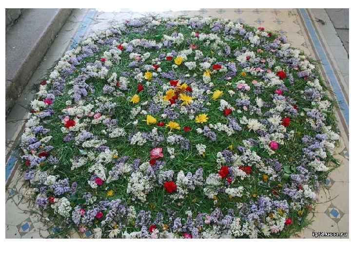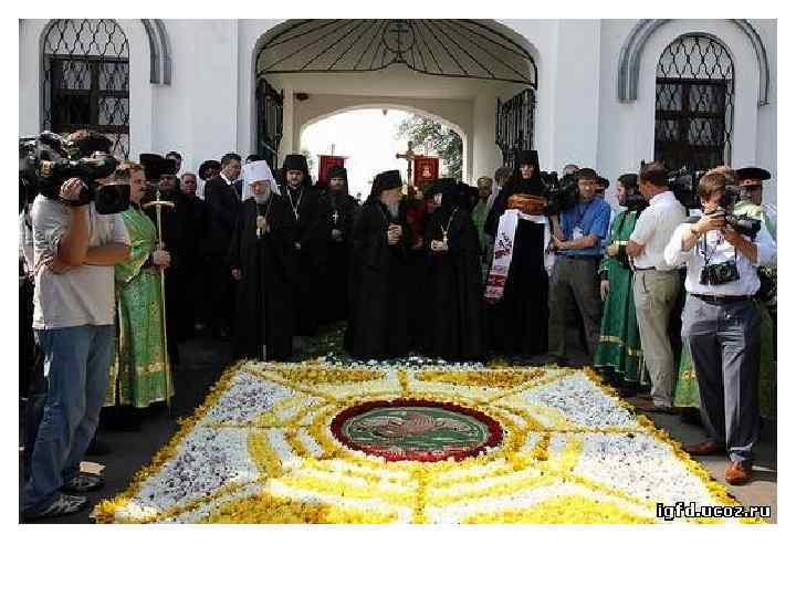 Благоговейно, тактично подходят к выбору цветов и зелени, предназначенных для разбрасывания по дорожке, украшаемой по случаю особого церковного торжества: выноса чтимой иконы или приезда высокого духовного лица — Святейшего Патриарха либо архипастыря. Украшение архиерейского орлеца — тоже дело непростое. Здесь издавна определился губернский стиль; в каждой губернии орлец украшали цветами по-своему. Да и в каждом крупном монастыре сложилась своя традиция декора. Внимательный взор найдет устойчивые черты, отличающие цветочное убранство, скажем, храмов Московского Новоспасского монастыря от убранства в Троице-Сергиевой лавре.
