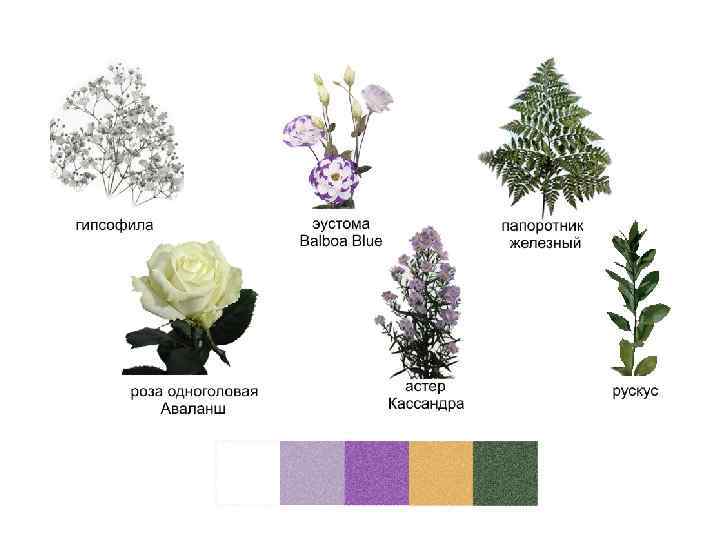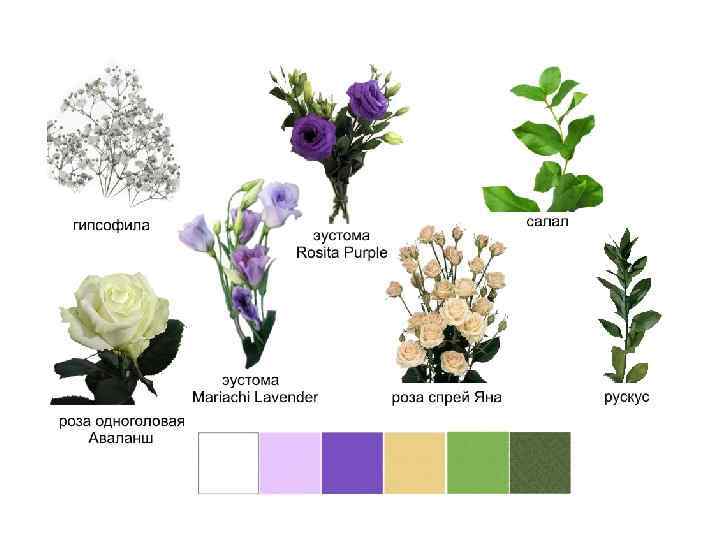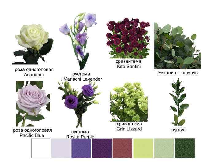 В 2013 году Праздник Благовещения совпадал с началом Крестопоклонной недели. Традиционные цвета оформления креста - красный, фиолетовый, белый во множестве оттенков и бесконечном количестве их сочетаний. Для украшения же Богородичных праздников приняты бело-голубые цвета. Как лучше сочетать все это между собой? Чтобы подчеркнуть разницу между совпавшими по времени праздниками и, одновременно, сохранить общую гармонию, поиграем пропорциями цвета и его оттенками. Выберем для украшения креста более темные, насыщенные цвета с переходом к белому. Больше сиреневых и лавандовых оттенков и совсем немного светлых и белого. А для иконы Благовещения возьмем тот же видовой состав растений, но основными сделаем белый цвет и светлые оттенки сиреневого. От самых темных тонов сиреневого в украшении иконы Благовещения откажемся. В итоге получим мягкие переходы цвета не только внутри отдельно взятых цветочных композиций, но и в восприятии оформления в целом. Маленькая хитрость цветовосприятия. Чтобы фиолетовые тона не выглядели мрачными, к ним в очень небольшом количестве можно добавить желтый или салатовый (зеленый с большим количеством желтого) цвет. При таком соседстве фиолетовые цвета засияют и приобретут грубину и бархотистость. Во многих цветах желтый уже присутствует в окраске тычинок, например, как у некоторых сортов эустомы, фрезии, альстромерии. Вот некоторые примеры сочетания цвета для рассмотренного нами случая.