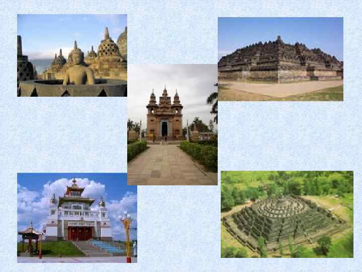 Буддийские храмы • Древние мудрецы считали, что мир держится на равновесии добра и зла, неба и земли. Квадрат воспринимался знаком земли, а круг – знаком неба. Таким образом, круг, вписанный в квадрат, символизировал Вселенную.