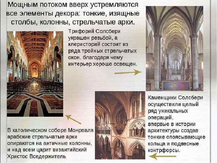 Певучесть слова, строгие лики древних икон, величественная архитектура церквей и храмов, монументальность фресок, сдержанная пластика скульптур, звучащая церковная музыка с ее строгими и возвышенными мелодиями, предметы декоративноприкладного искусства, архитектуры и живописи. Римско католический храм Непорочного Зачатия Пресвятой Девы Марии