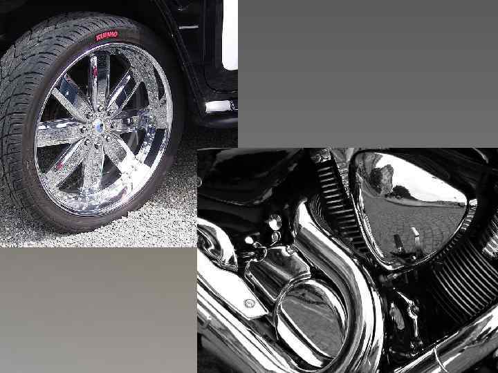 ПРИМЕНЕНИЕ Хром — важный компонент во многих легированных сталях (в частности, нержавеющих), а также и в ряде других сплавов. Используется в качестве износоустойчивых и красивых гальванических покрытий (хромирование). Хром применяется для производства сплавов: хром-30 и хром 90, незаменимых для производства сопел мощных плазмотронов и в авиакосмической промышленности.