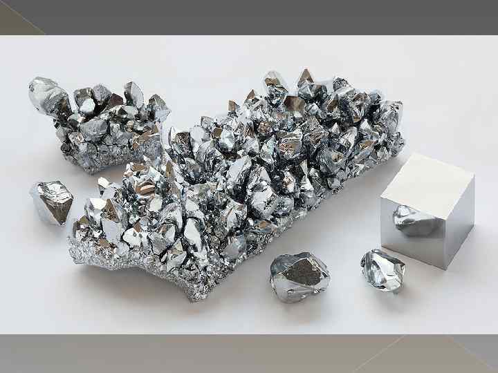 ПОЛУЧЕНИЕ Чтобы получить чистый хром, реакцию ведут следующим образом: 1) сплавляют хромит железа с карбонатом натрия (кальцинированная сода) на воздухе: 4 Fe(Cr. O 2)2 + 8 Na 2 CO 3 + 7 O 2 → 8 Na 2 Cr. O 4 + 2 Fe 2 O 3 + 8 CO 2↑ 2) растворяют хромат натрия и отделяют его от оксида железа; 3) переводят хромат в дихромат, подкисляя раствор и выкристаллизовывая дихромат; 4) получают чистый оксид хрома восстановлением дихромата углём: Na 2 Cr 2 O 7 + 2 C → Cr 2 O 3 + Na 2 CO 3 + CO↑ 5) с помощью алюминотермии получают металлический хром: Cr 2 O 3+ 2 Al → Al 2 O 3 + 2 Cr + 130 ккал 6) с помощью электролиза получают электролитический хром из раствора хромового ангидрида в воде, содержащего добавку серной кислоты. При этом на катодах совершаются в основном 3 процесса: восстановление шестивалентного хрома до трехвалентного с переходом его в раствор; разряд ионов водорода с выделением газообразного водорода; разряд ионов, содержащих шестивалентный хром, с осаждением металлического хрома; Cr 2 O 72− + 14 Н+ + 12 е− = 2 Cr + 7 H 2 O