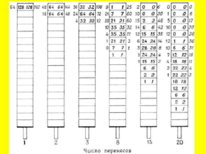 Представим, что 256 идентичных молекул, которые равномерно распределяются между неподвижной и подвижной фазами, введены в колонку с 18 теоретическими тарелками (верхний рисунок справа далее по тексту). В верхней теоретической тарелке (начальной) 256 молекул распределены так, что в каждой фазе находится по 128 молекул. При переходе 128 подвижных молекул с первой теоретической тарелки па вторую они распределяются на ней по 64; оставшиеся на первой теоретической тарелке 128 молекул перераспределяются по 64 в каждой фазе, как показано на рисунке. При продвижении подвижных фаз еще на одну теоретическую тарелку снова происходит перераспределение. После 20 последовательных переносов достигается состояние, изображенное на рисунке.
